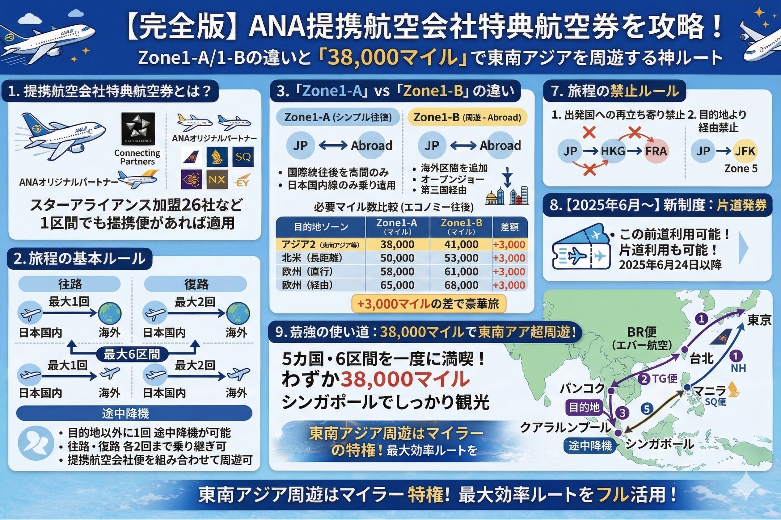 【完全版】ANA提携航空会社特典航空券を攻略!Zone1-A/1-Bの違いと「38,000マイル」で東南アジアを周遊する神ルート