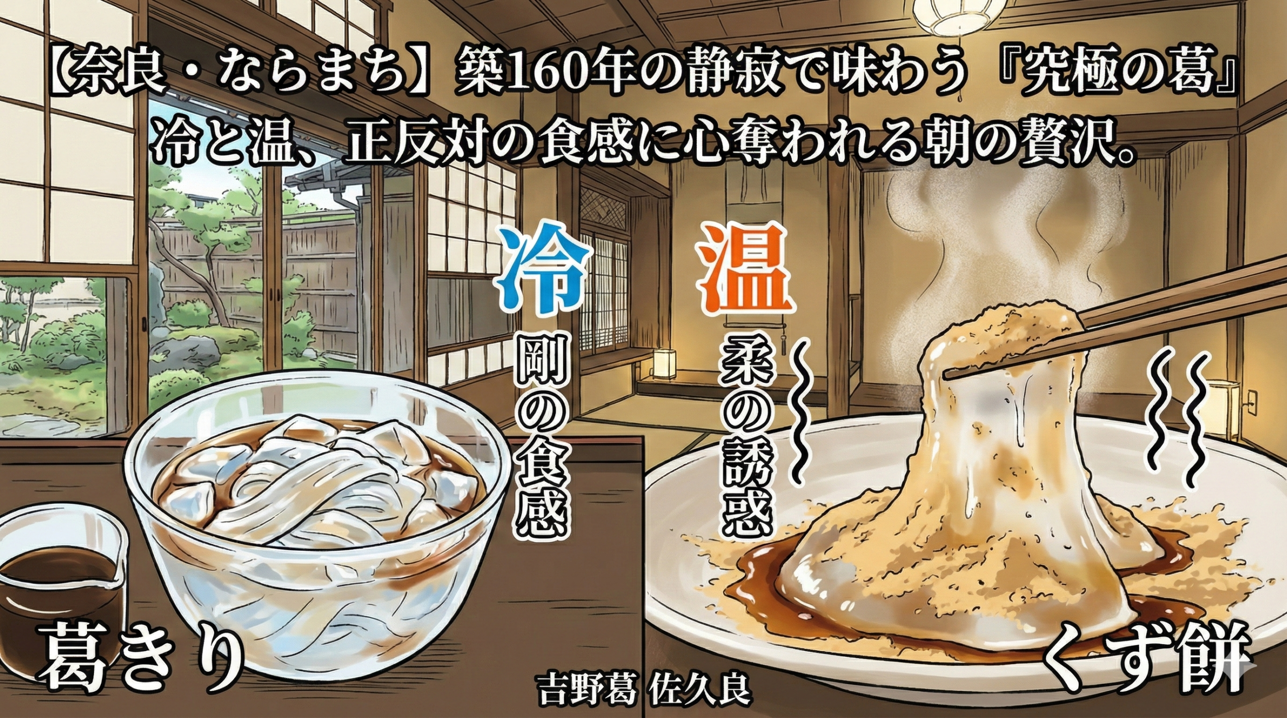 旅行 【奈良・ならまち】築160年の静寂で味わう「究極の葛」。冷と温、正反対の食感に心奪われる朝の贅沢。