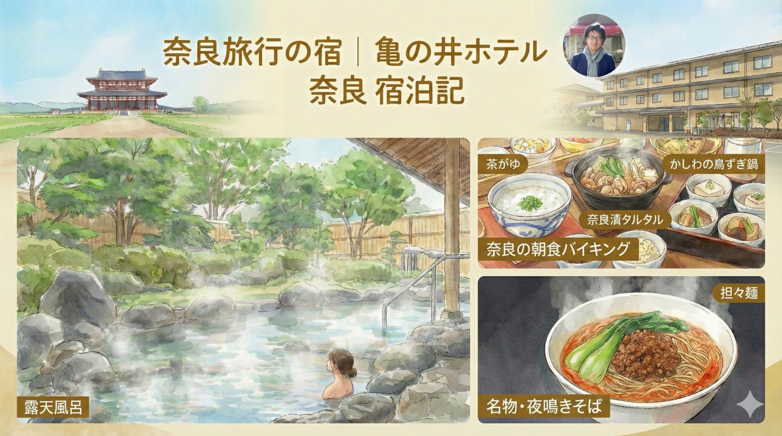 旅行 奈良旅行の宿|亀の井ホテル 奈良 宿泊記。朝食の奈良名物と雪見露天に大満足