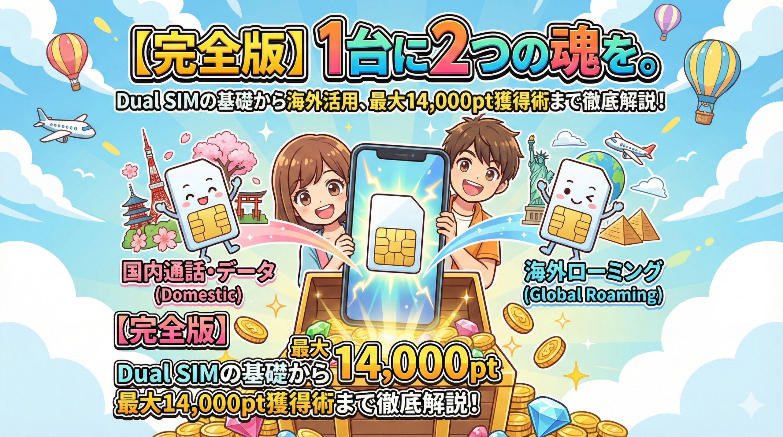 楽天モバイル 【完全版】1台に2つの魂を。Dual SIM(デュアルSIM)の基礎から海外活用、最大14,000pt獲得術まで徹底解説!