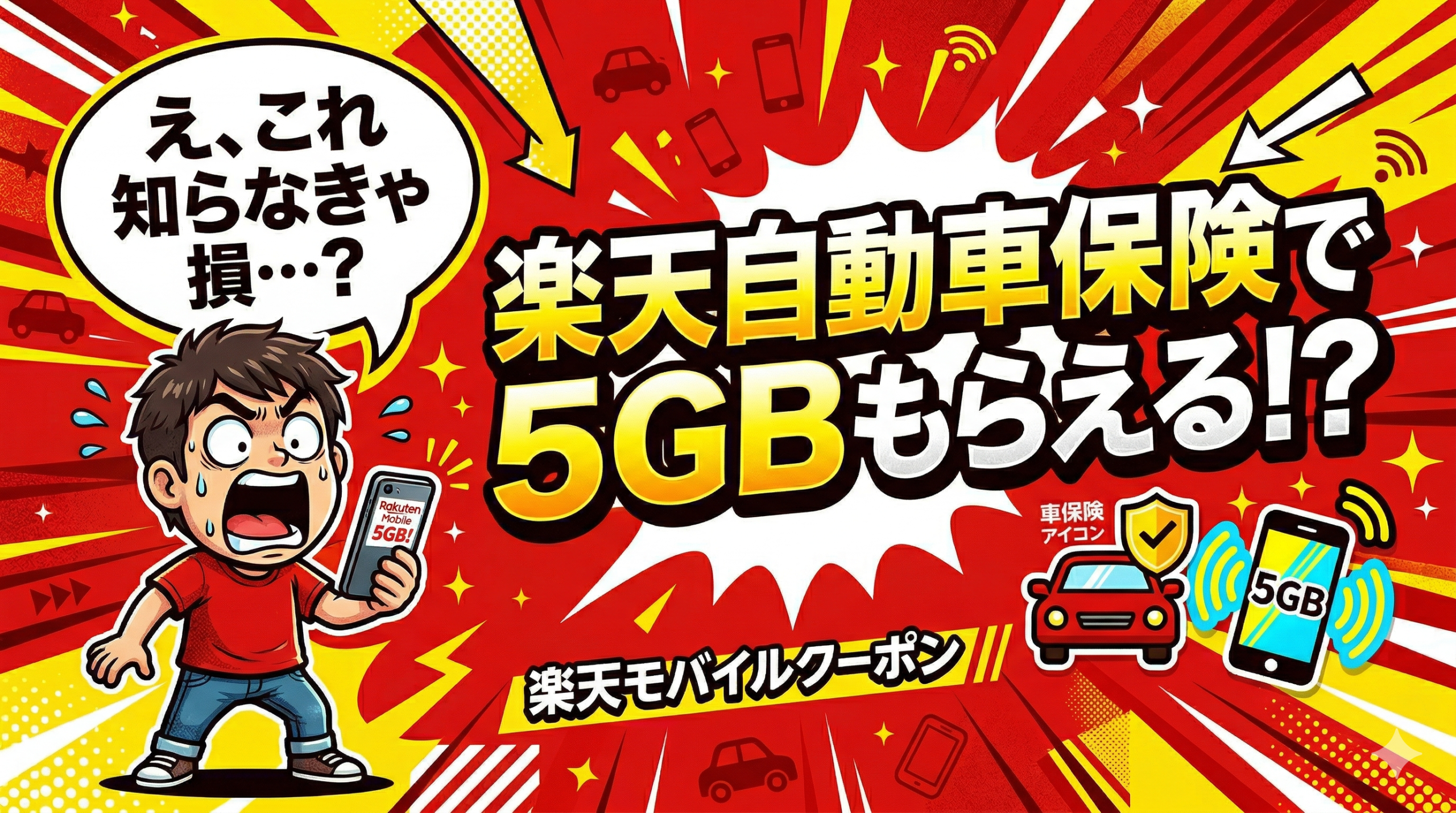 結論からいうと、この特典は楽天自動車保険(個人用自動車保険)を新規契約した人向けに、楽天モバイルで使える5GB分のギガ割引クーポンが進呈されるという内容です。