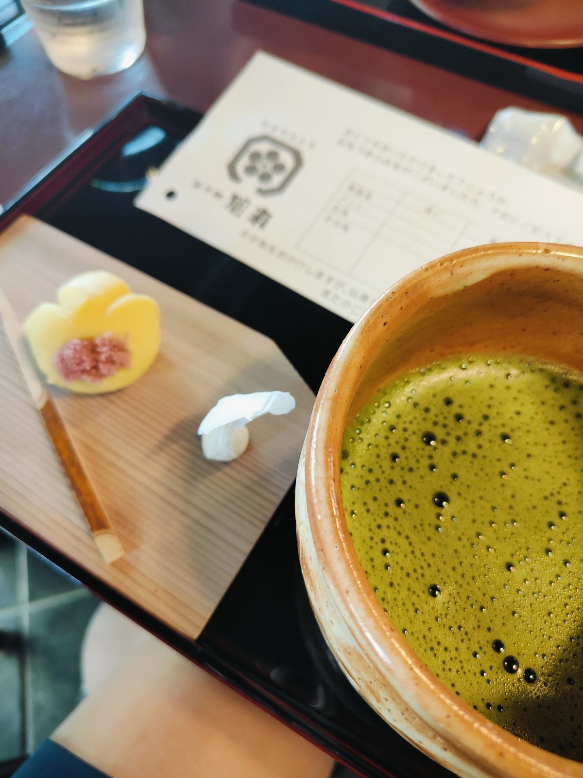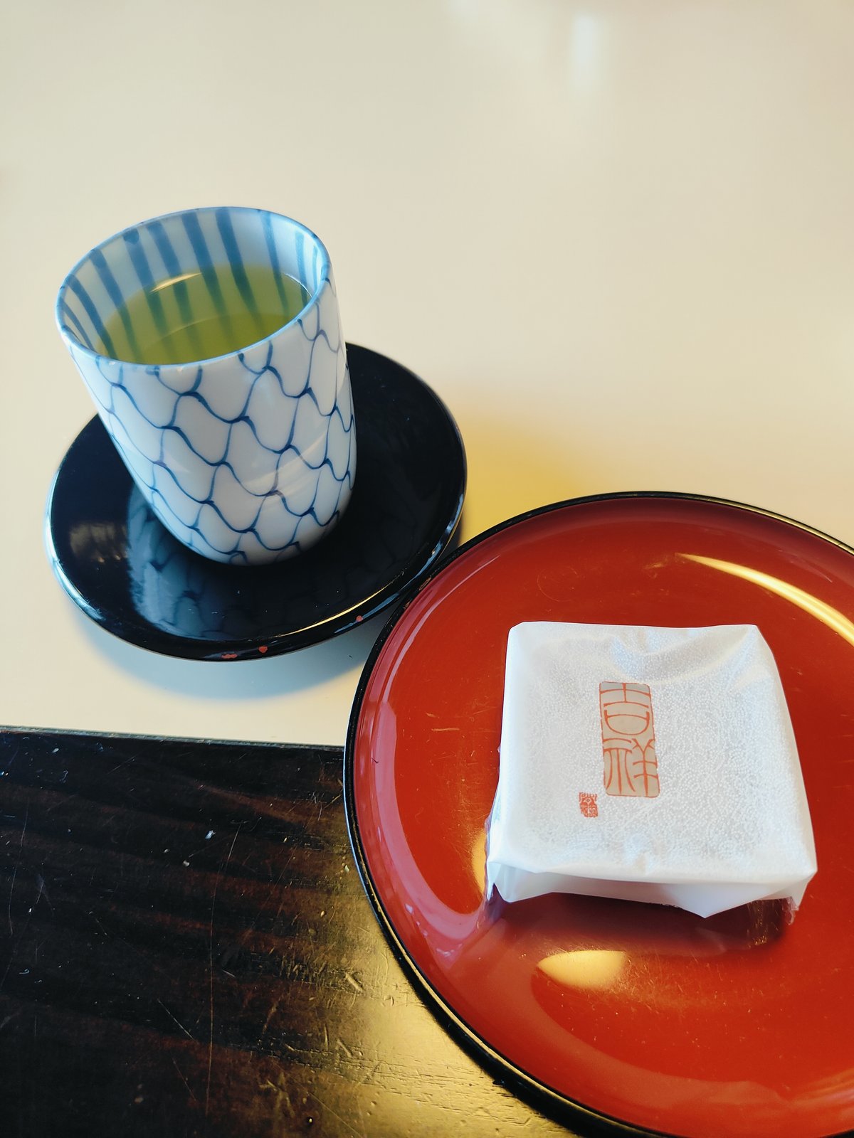 チェックイン時に出てきたお菓子は、地元老舗「菓子舗 間瀬」の和菓子。こういう地域ならではのもてなしにテンションが上がります。