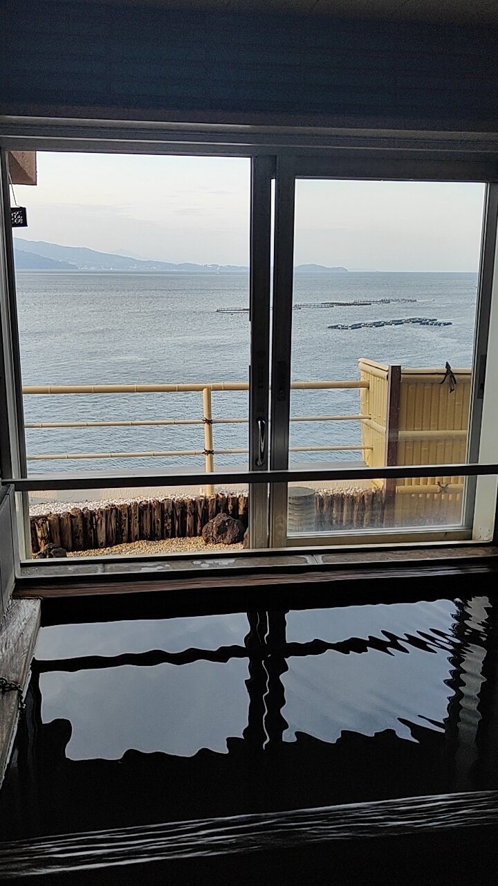 特に貸切露天風呂は先着順で、運良く「望洋」に入浴できました。目の前に広がる海を眺めながら入る温泉は格別。お湯は肌にやさしく、旅の疲れをしっかり癒してくれます。